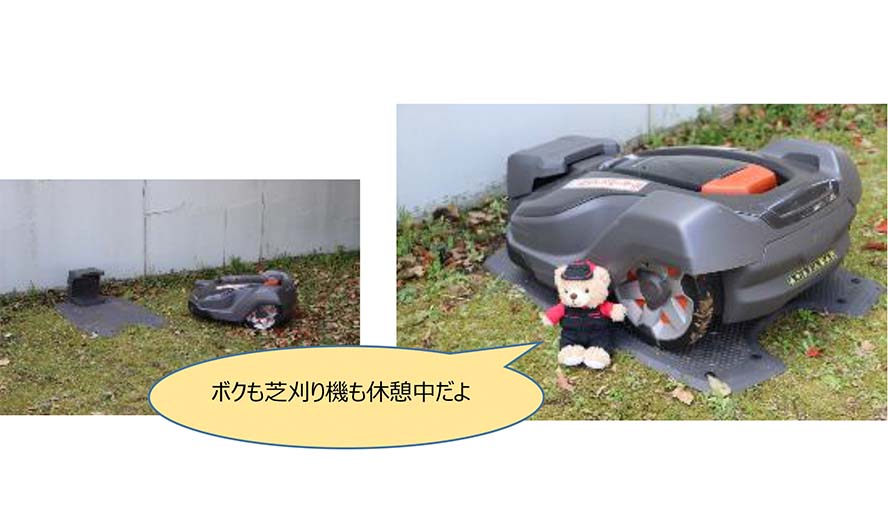 There is an automatic lawn mower in the plant, and it takes a stroll around the premises while mowing the lawn.