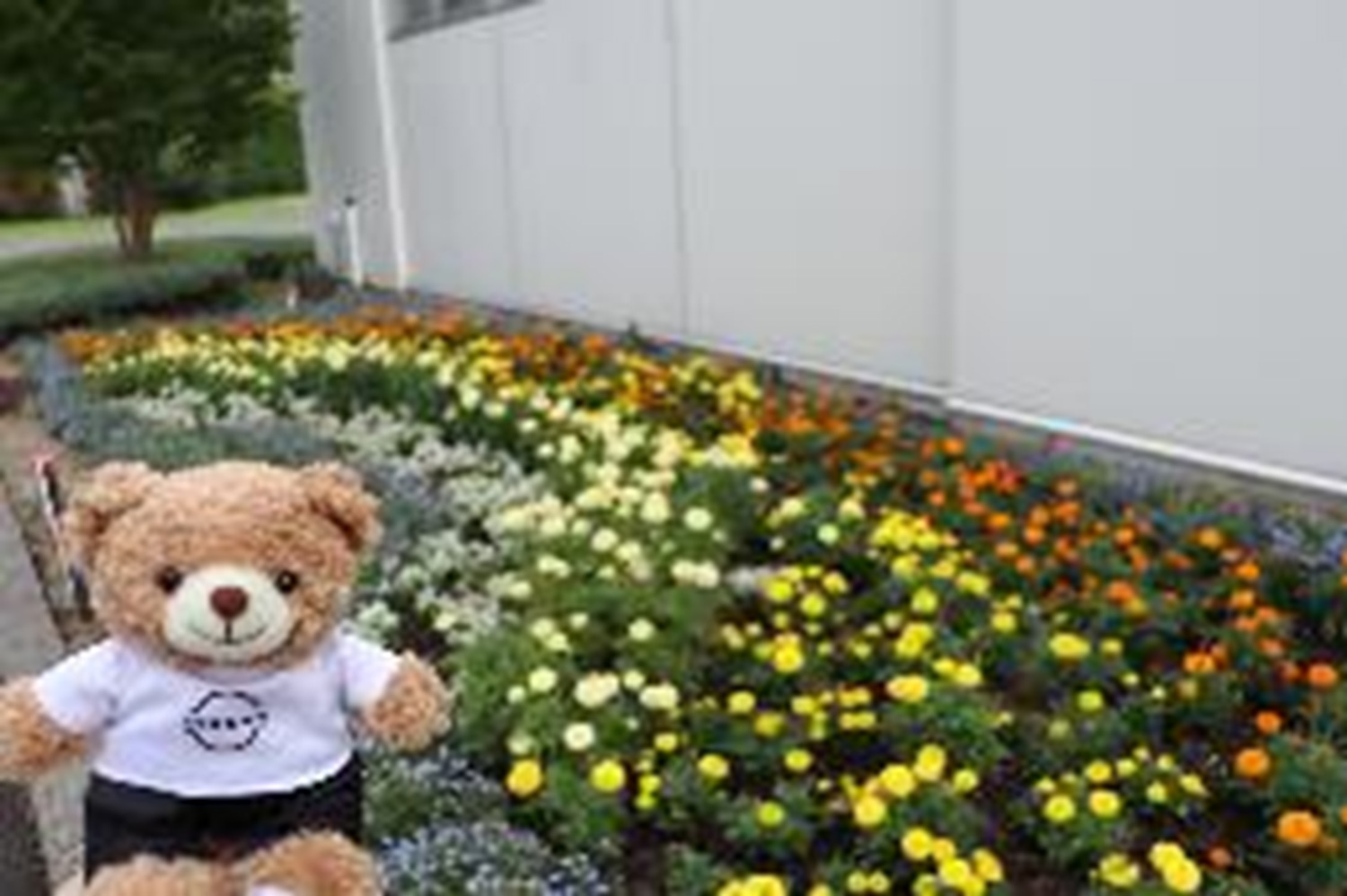 We have planted seasonal flowers in the flower bed at the entrance of the Guest Hall.