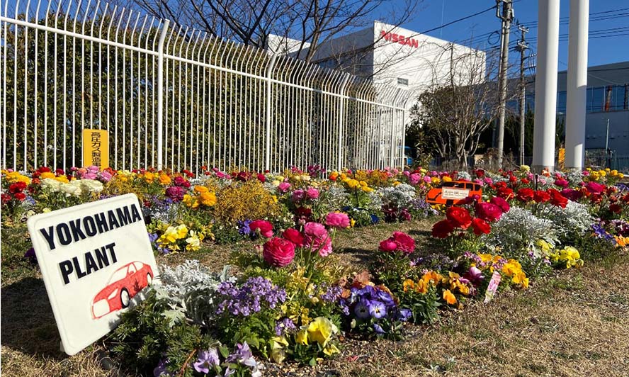 The Yokohama Plant is engaged in beautification activities with the hope of showing visitors how attractive here.