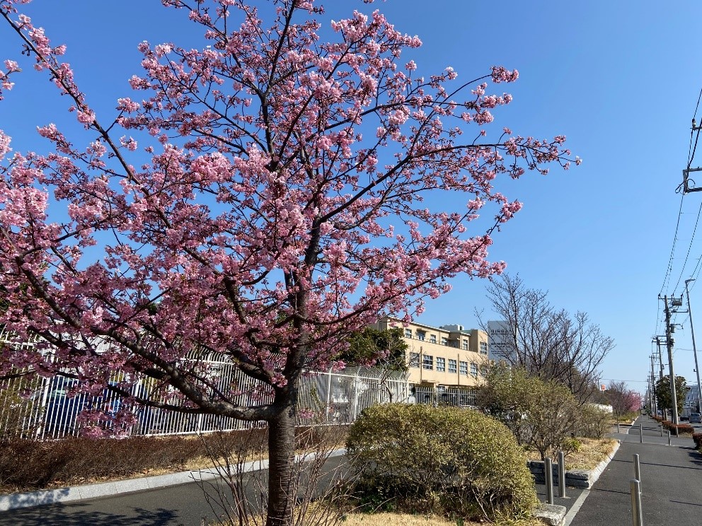 If you notice it, it's already March... It's almost spring. Flowers that feel spring are beginning to bloom at the Yokohama Plant guest hall. Kawazu cherry blossoms are in bloom alongside on the street near here, and various flowers are in bloom on the plant tour course. Please enjoy them when you visit the Yokohama plant!