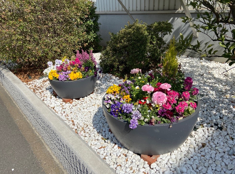 Kawazu cherry blossoms and other spring flowers are blooming around the plant, and it makes us feel appeased.