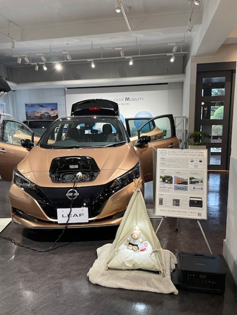 Furthermore, we are introducing the display using "The Portable Batteries from LEAF" and these are reused batteries of "NISSAN LEAF"♪