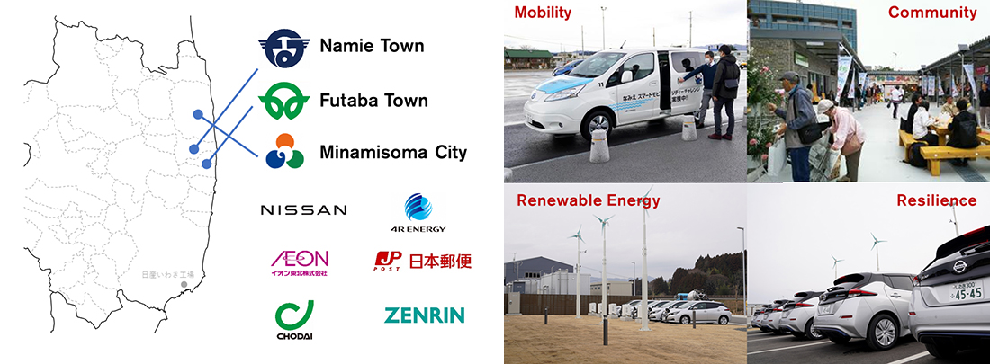 The Namie agreement relies on the knowledge and technology of companies like Nissan and its affiliate 4R Energy, Aeon (distribution), Japan Post (logistics), Chodai (construction) and Zenrin (mapping).