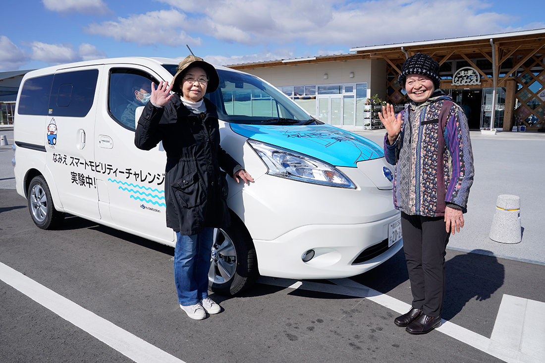 The Namie Smart Mobility Challenge is putting this concept to the test and is already receiving positive feedback from participants. One such participant said, " I can't drive a car, so it was great that there was no need to make a reservation - I just stood in front of the digital bus stop and a car came. Even if this is just a demonstration, I think that if this kind of smart mobility system would enable people to go about their day-to-day lives in Namie with peace of mind."
