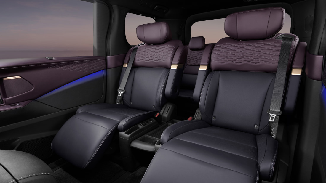 Stepping inside, the cabin exudes a private lounge-like atmosphere complimented with TailorFit™ leather and woodgrain accents, along with Kumiko-inspired patterns on the door and seat trims. Second-row passengers can indulge in the comfort of zero gravity captain's chairs with an extendable leg rest. All on-board can enjoy the sensory experience of Bose audio and ambient lighting.